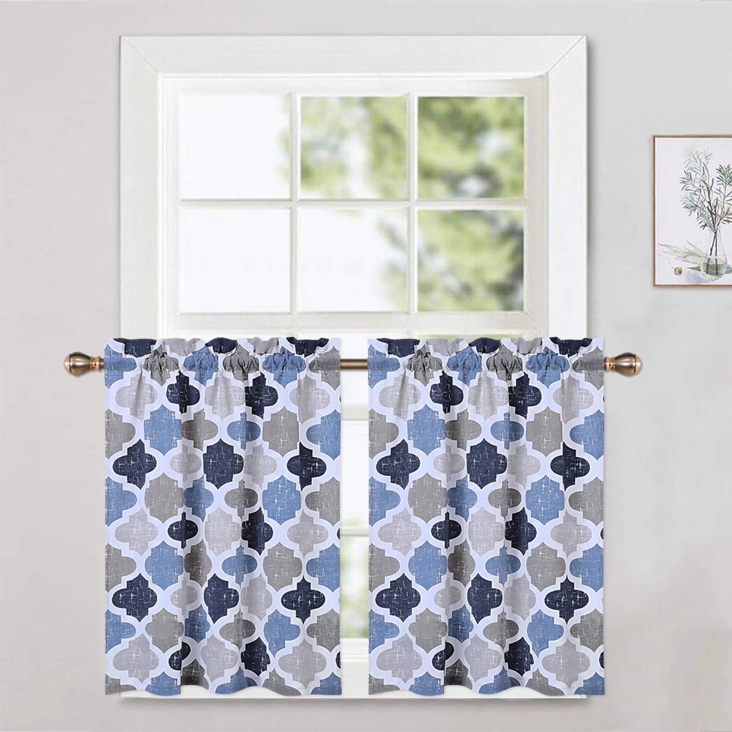 Amazon Com Caromio Cafe Curtains 30 Inch Length Quatrefoil Trellis Printed Cotton Blend Short Farmhouse Kitchen Curtains Small Half Window Curtains For Bathroom Navy Blue Grey Home Kitchen